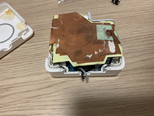 충전기 줄을 다 잘라내고, 충전기를 분해했습니다. 안에 그냥 본드를 잔뜩 발라 붙여놓았으므로 그냥 강제로 벌려 열었습니다.